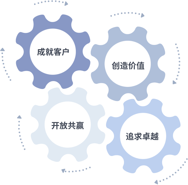 成就客户是一切决策的出发点,创造价值是衡量所有工作的标准,追求卓越是雅博做事做人的态度,开放共赢是雅博的格局也是最终的结果。价值观的齿轮环环相扣,推动着组织里的每个人不断向前。